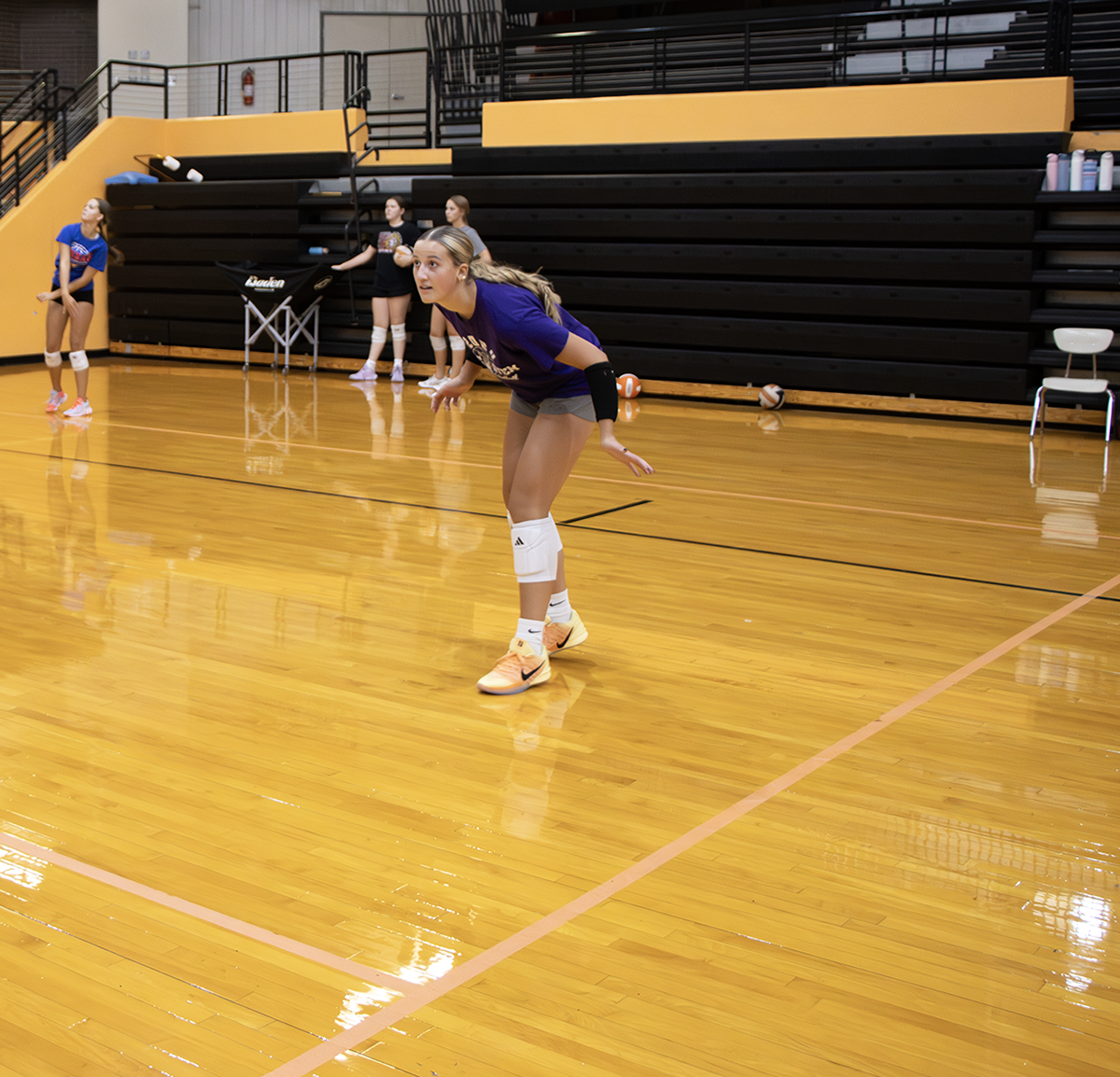 Senior Dalaney Ratcliff readies herself to receive a serve. She passed to her setter for the second touch of the ball.