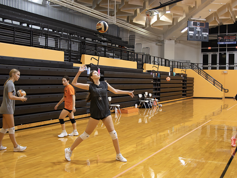 Junior Charleigh Shaver serves during a during a serve and pass drill. The JV team practiced passes off her serves.